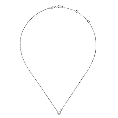 Gabriel & Co., Sterling Silver Cultured Pearl and Bezel Set Diamond Necklace