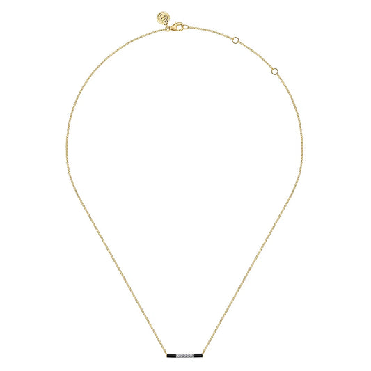 Gabriel & Co., 14K Yellow Gold Diamond Bar Necklace with Black Enamel