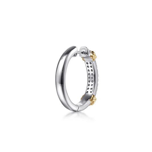 Gabriel & Co., 14K Yellow Gold and 925 Sterling Silver Bujukan White Sapphire Hoops
