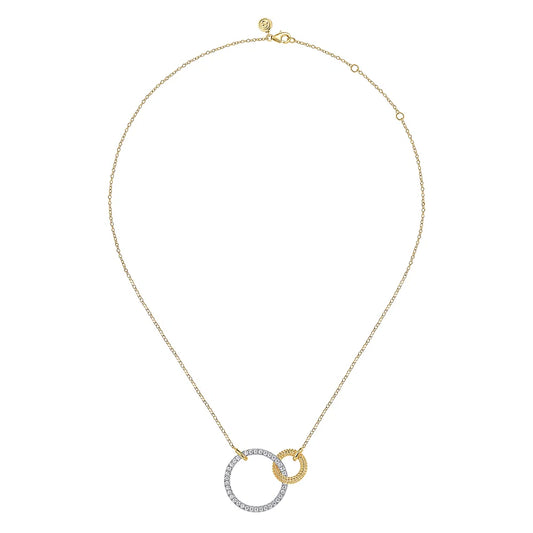 Gabriel & Co., 14K White & Yellow Gold Bujukan and Diamond Interlocking Pendant Necklace