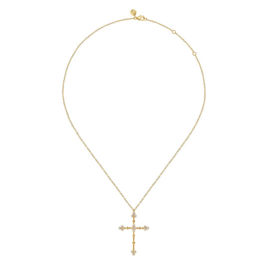 Gabriel & Co., 14K Yellow Gold Bujukan and Diamond Clover Cross Pendant Necklace