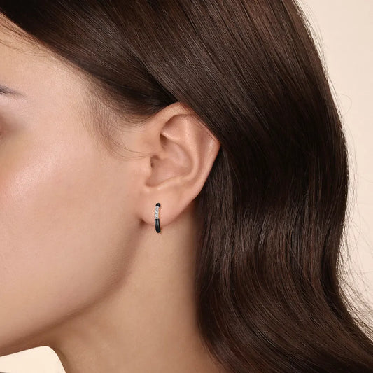 Gabriel & Co., 14K Yellow Gold Diamond Huggie Earrings with Black Enamel