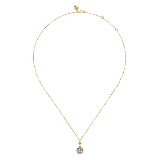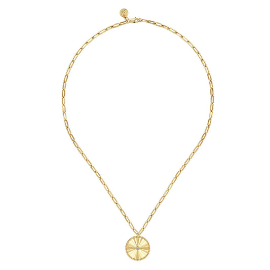 Gabriel & Co., 18 inch 14K Yellow Gold Textured Diamond Medallion Hollow Chain Necklace