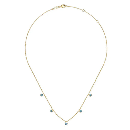 Gabriel & Co., 14K Yellow Gold London Blue Topaz Station Necklace