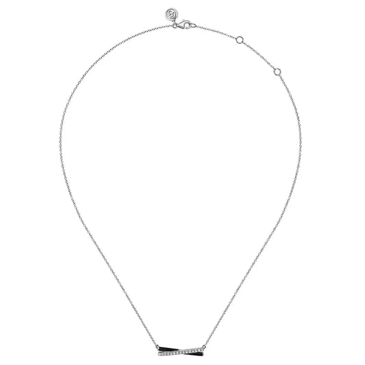 Gabriel & Co., 925 Sterling Silver White Sapphire Criss Cross Bar Necklace with Black Enamel