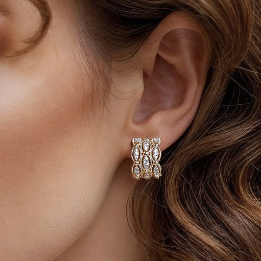 Gabriel & Co., 14K Yellow Gold Bujukan Multi Row Diamond Huggie Earrings