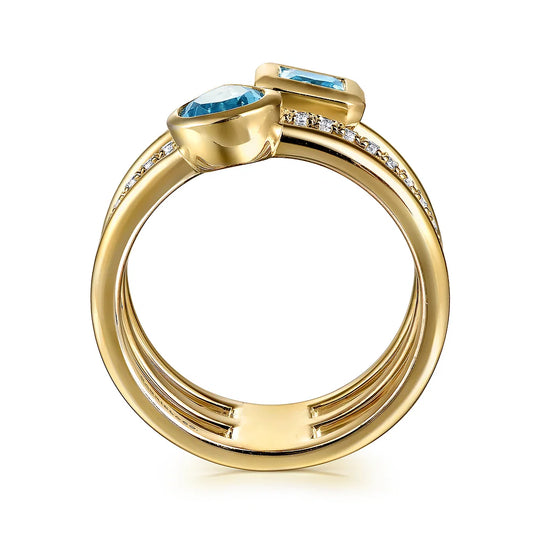 Gabriel & Co., 14K Yellow Gold Diamond and Blue Topaz Easy Stackable Ring