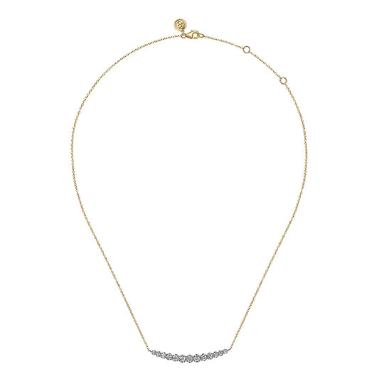Gabriel & Co., 14K Yellow and White Gold Graduating Diamond Bar Necklace