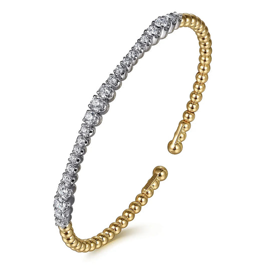 Gabriel & Co., 14K White & Yellow Gold Bujukan Beads and Graduating Diamond Split Bangle Bracelet