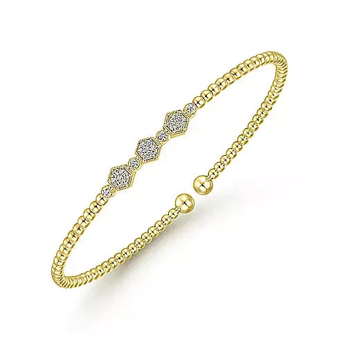 Gabriel & Co.,14K Yellow Gold Bujukan Bead Cuff Bracelet with Cluster Diamond Hexagon Stations