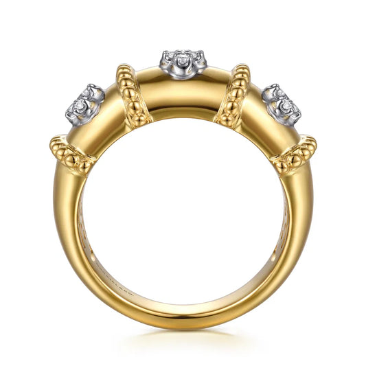 Gabriel & Co., 14K White & Yellow Gold Bujukan and Diamond Wide Band Ring