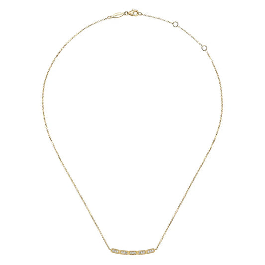 Gabriel & Co., 14K Yellow Gold Curved Rectangular Station Bar Necklace with Diamonds