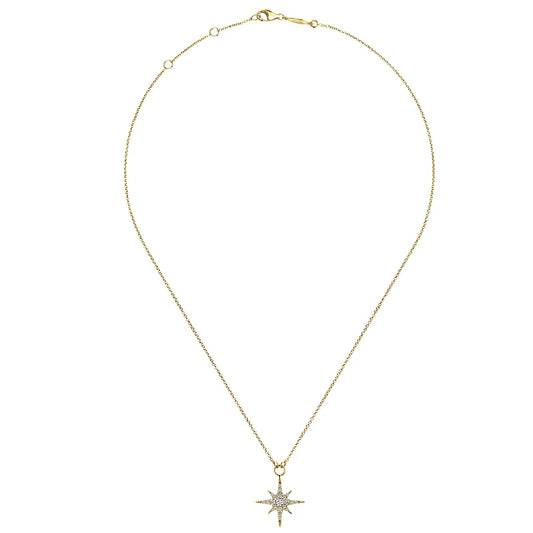 Gabriel & Co., 14K Yellow Gold Diamond Starburst Pendant Necklace