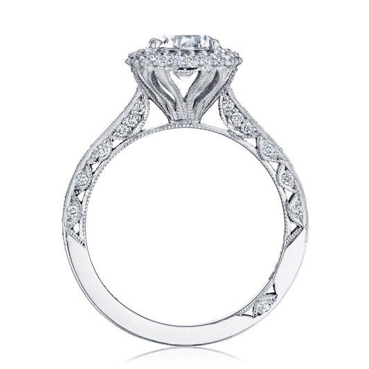 Tacori Reverse Crescent 18KW Round Halo Engagement Ring