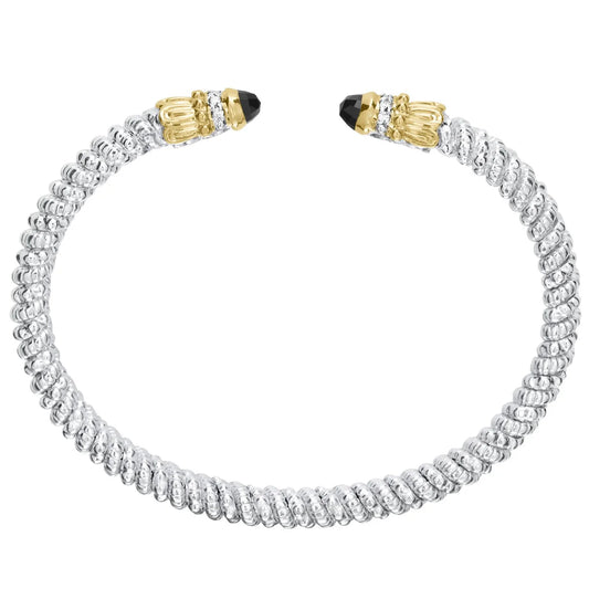VAHAN 14K Gold and Sterling Silver Black Onyx and Diamond Stackable Cuff Bracelet 3MM