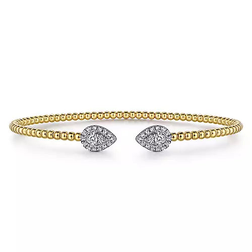 Gabriel & Co., 14K Yellow and White Gold Pear Shape End Open Bujukan Bangle