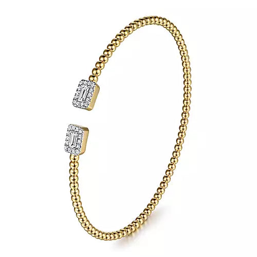 Gabriel & Co., 14K Yellow Gold Bujukan Open Cuff Bracelet with Diamond Baguettes