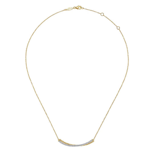 Gabriel & Co., 14K Yellow-White Gold Bujukan Bead and Diamond Pavé Curved Bar Necklace