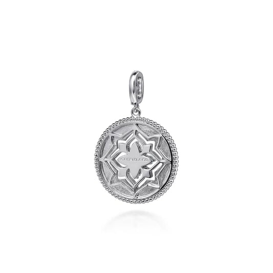 Gabriel & Co., 925 Sterling Silver Blue Topaz and White Sapphire Bujukan Medallion Pendant in size 24mm