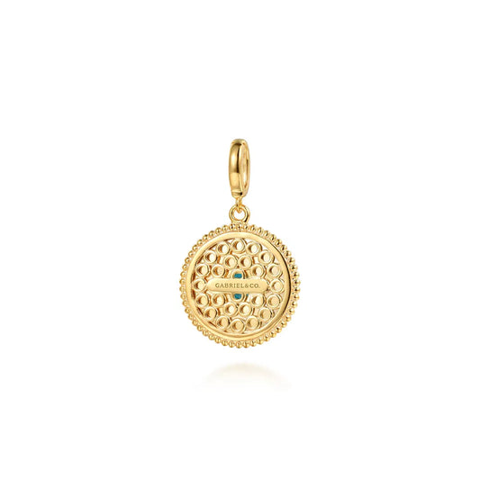 Gabriel & Co., 14K Yellow Gold Bujukan Blue Topaz Medallion Pendant With Detachable Bail