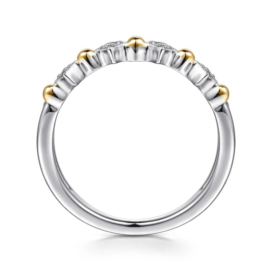 Gabriel & Co., 14K Yellow Gold and 925 Sterling Silver Bujukan Ball White Sapphire Easy Stackable Ring