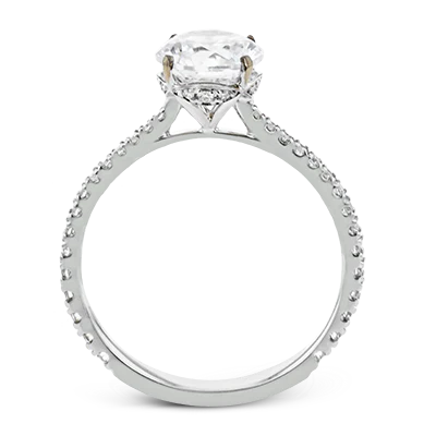 Simon G. 18K White Gold Semi Mount Diamond Engagement With Round Center and Hidden Halo