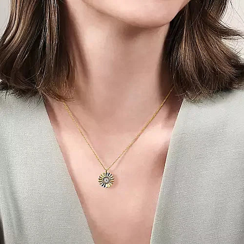 Gabriel & Co., 14K White and Yellow Gold Diamond Cut Pendant Necklace