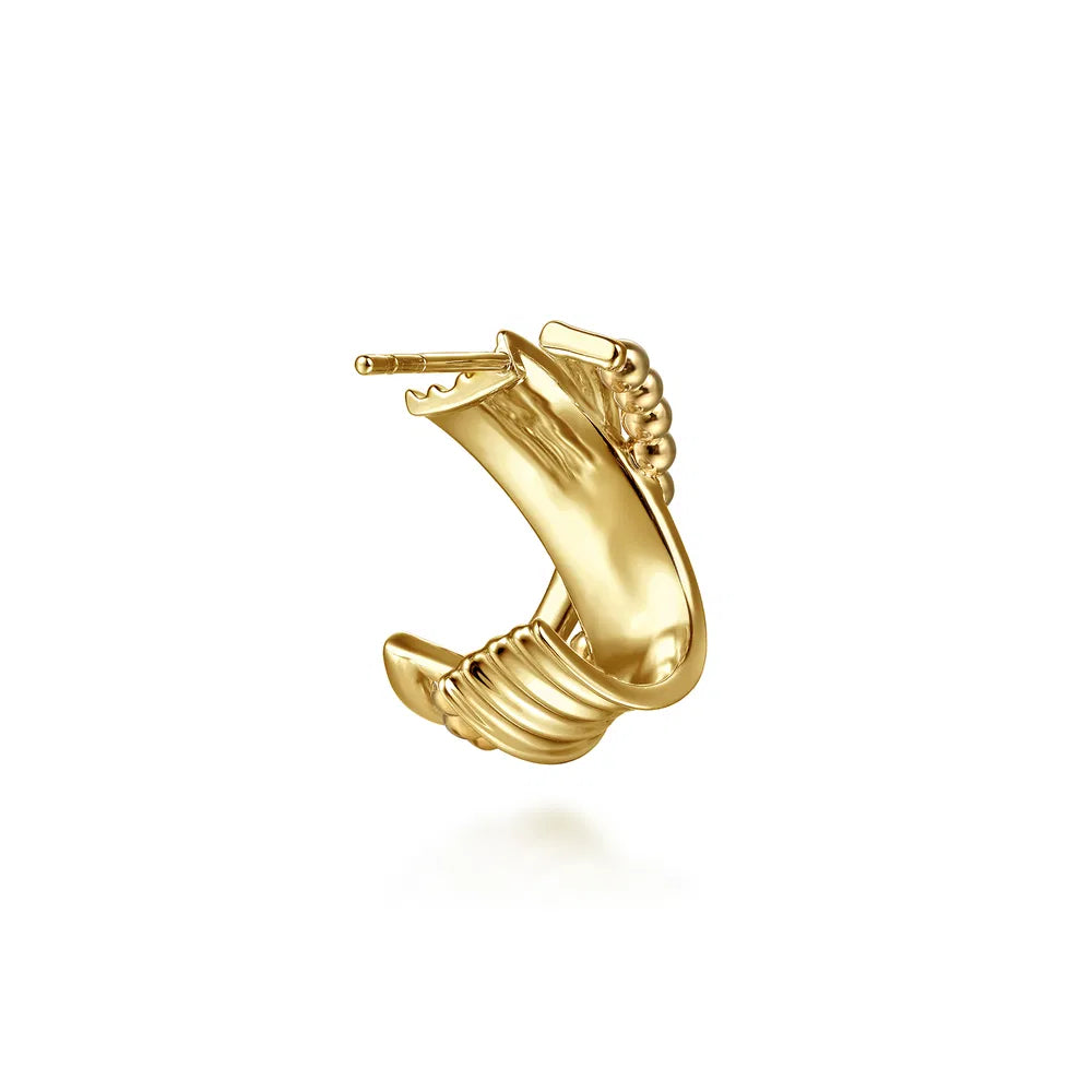 Gabriel & Co., 14K Yellow Gold Bujukan Criss Cross J Hoop Earrings