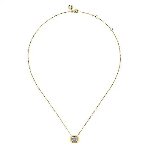 Gabriel & Co., 14K Yellow Gold Geometric Baguette and Round Diamond Pendant Necklace
