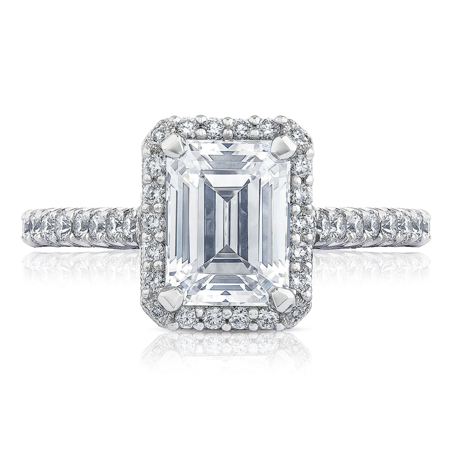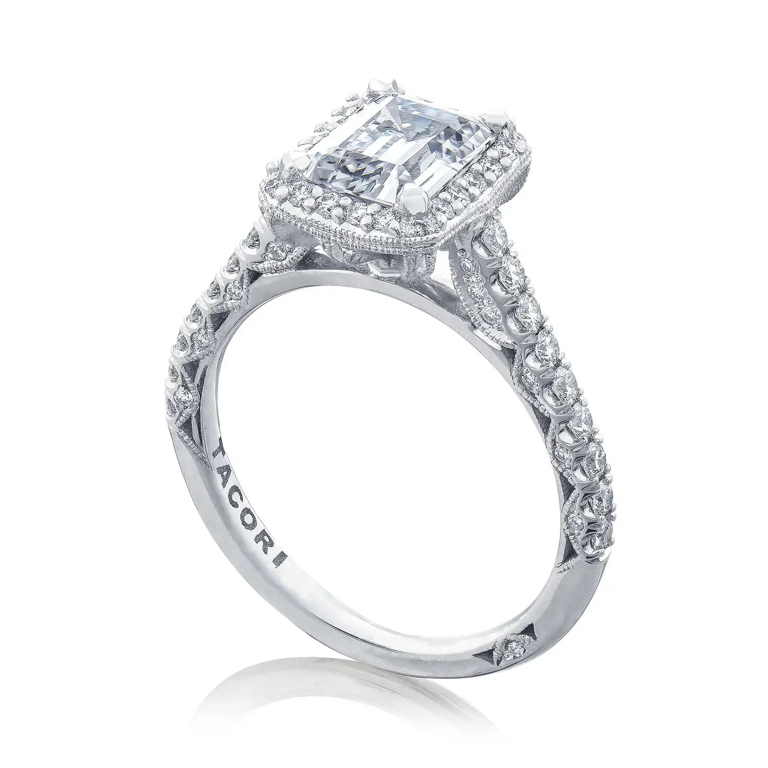 Tacori Petite Crescent 18KW Emerald Halo Diamond Ring