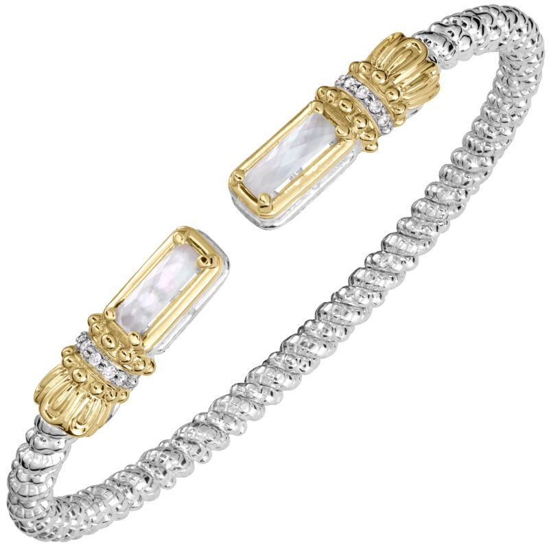 VAHAN 14K Gold and Sterling Silver, Mother of Pearl and Diamond Stackable Bracelet 3MM