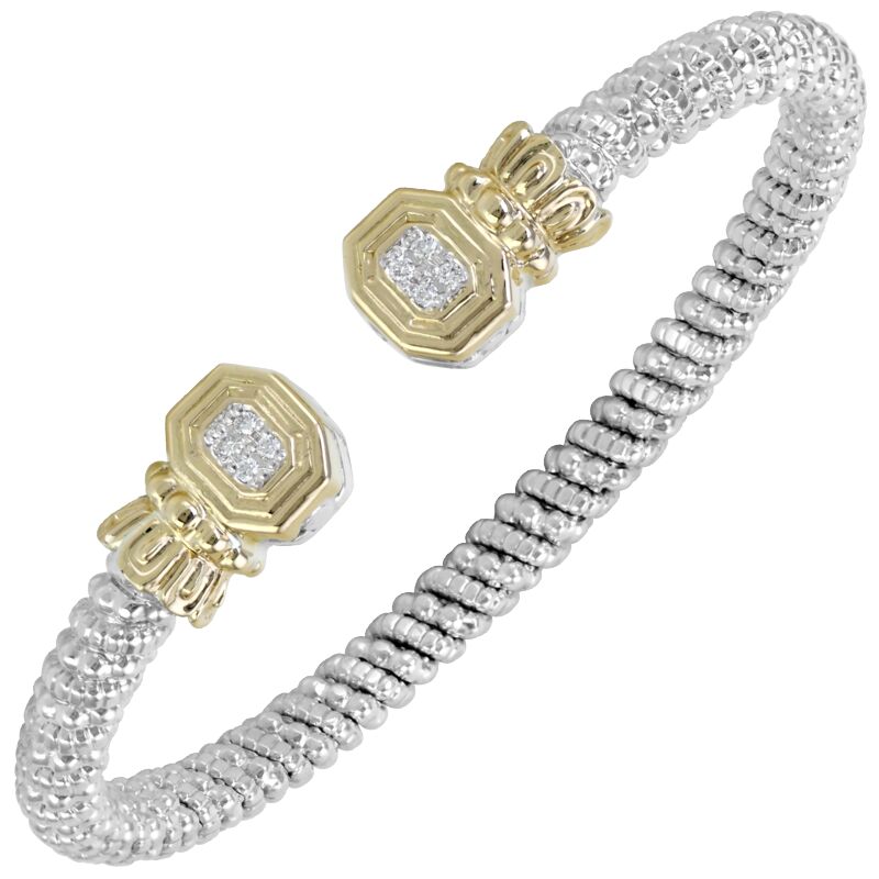 VAHAN 14K Yellow Gold, Diamond, and Sterling Silver 4MM Open Cuff